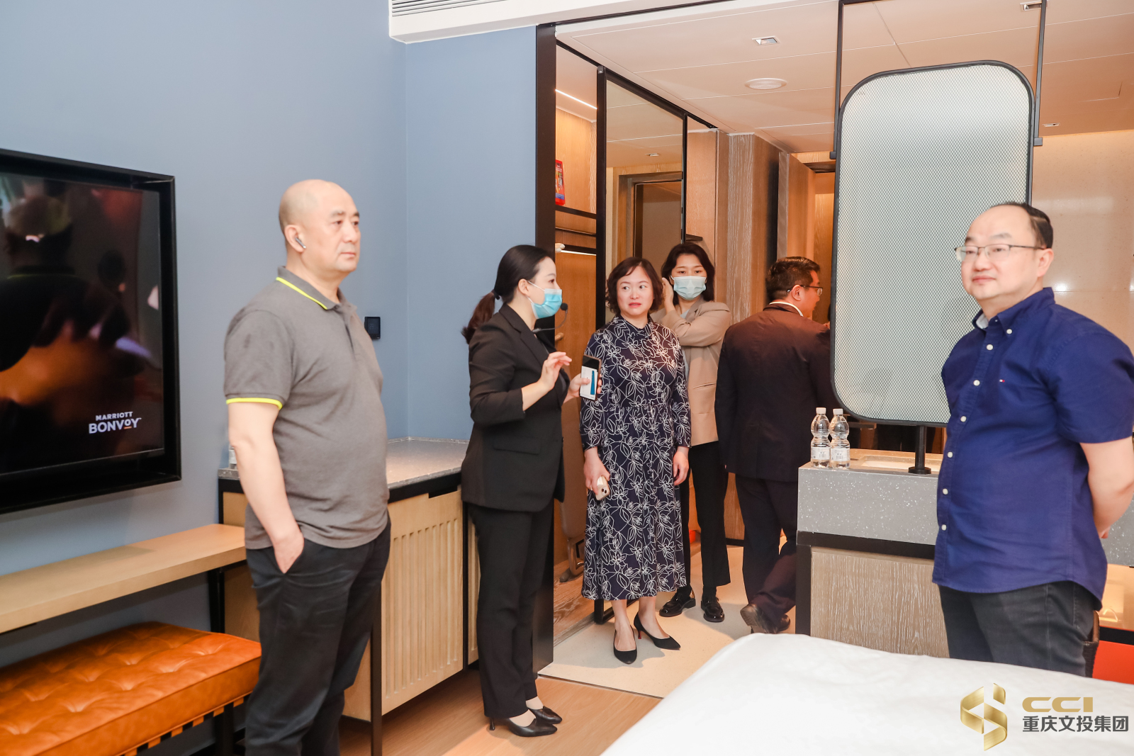 “永川里”福朋喜来登酒店亲子房有专门的儿童卡通水龙头、小朋友的座椅和帐篷,套房有太空舱按摩椅和用毛巾折出的欢迎布偶“永川龙”,都让人眼前一亮。集团行政办曾婷婷在参观时,看到细节设计拉满的亲子房,就表达了要带孩子来永川游玩的愿望。文里苗品茶艺术酒店总经理刘晓妮参观完万豪双品牌酒店后表示,双品牌酒店从规划设计到选材用材都很考究,两家酒店各有风格,却都有高水平的服务标准,“他们从大堂的灯光设计到客房的选画挂画都一丝不苟,做到了与重庆、永川在地文化元素的结合,极致的服务给人的感觉非常温馨,这些细节都值得我们团队对标认真学习。”
